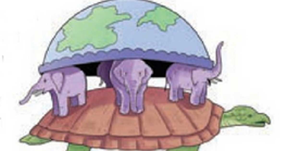 যেমন এককালে কিছু মানুষ বিশ্বাস করতো এই পুরো বিশ্বজগত রাখা আছে চারটা অতিকায় হাতির পিঠে, সেই হাতিগুলো আবার দাঁড়িয়ে আছে এক বিশাল কচ্ছপের পিঠে।