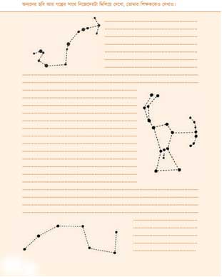 আগের দিনে যে তারার বিন্যাসের ছবি দেয়া হয়েছিল তা কি খুঁজে পেয়েছিলে? ক্লাসে আর কারা কারা খুঁজে পেয়েছে? আলোচনা করে দেখো তো অন্যরা কী বলে? আকাশ কত বড়?