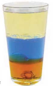 কাচের গ্লাস অথবা বড় টেস্টটিউব, মধু, পানি, ভোজ্য রঙ, ভোজ্য তেল, পেরেক, কিশমিশ, প্লাস্টিকের বোতলের ক্যাপ, পিংপং বল, তরলের আয়তন পরিমাপের জন্য ৫০ মি.লি. বিকার।