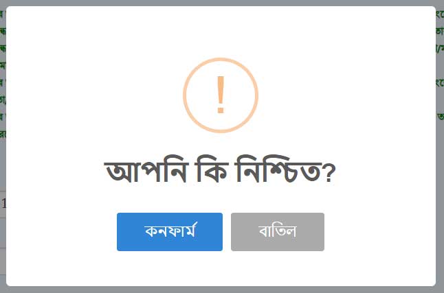 নিশ্চিত বাটনে ক্লিক করলে পরের ধাপে নিয়ে যাবে। আপনি সঠিক হলে নিশ্চিত করুন বাটনে ক্লিক করুন।