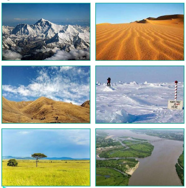 বিভিন্ন ভৌগোলিক অবস্থান এবং তাদের বৈশিষ্ট (পর্বতমালা, মরুভূমি, মালভূমি, মেরু অঞ্চল, তৃণভূমি)