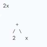 বীজগাণিতিক রাশিটির প্রথম পদটি 2x, যাকে ট্রির মাধ্যমে প্রকাশ করলে নিম্নরূপ হয়: