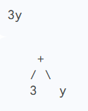 বীজগাণিতিক রাশিটির দ্বিতীয় পদটি 3y, যাকে ট্রির মাধ্যমে প্রকাশ করলে নিম্নরূপ হয়: