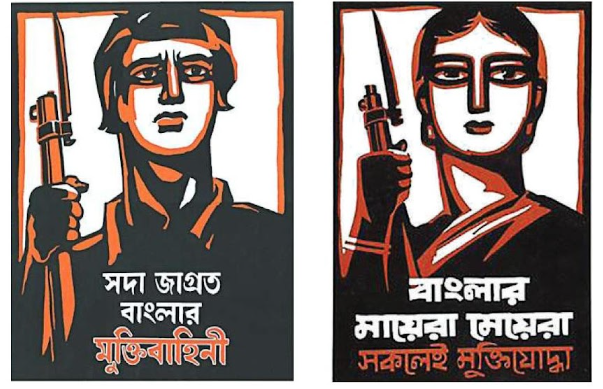 শিল্পী নিতুন কুন্ডু ও শিল্পী প্রাণেশ কুমার মন্ডলের আঁকা ১৯৭১ সালের মুক্তিযুদ্ধকালীন দুটি পোষ্টার।