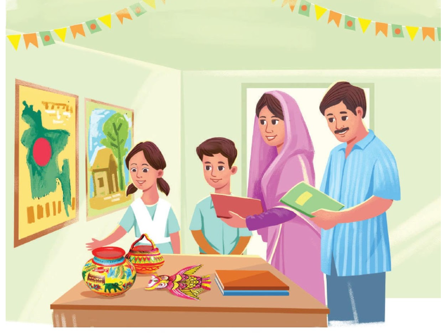 প্রদর্শনীটি আমরা শ্রেণিকক্ষের ভেতরে কিংবা বাইরেও আয়োজন করতে পারি। বন্ধুখাতাটিসহ অন্যান্য সব শিল্পকর্ম ও উপস্থাপনা প্রদর্শনের ক্ষেত্রে আমরা প্রথমে শিক্ষকের কাছে কাজগুলো জমা দেব ও উপস্থাপনের কথা জানাব এবং সেখান থেকে তিনি যেগুলো বাছাই করে দেবেন শুধু সেগুলো নিয়ে আমরা প্রদর্শনীর আয়োজন করব তাঁরই সহায়তা নিয়ে। বিজয়ের আলোয় সুন্দর আগামী।
