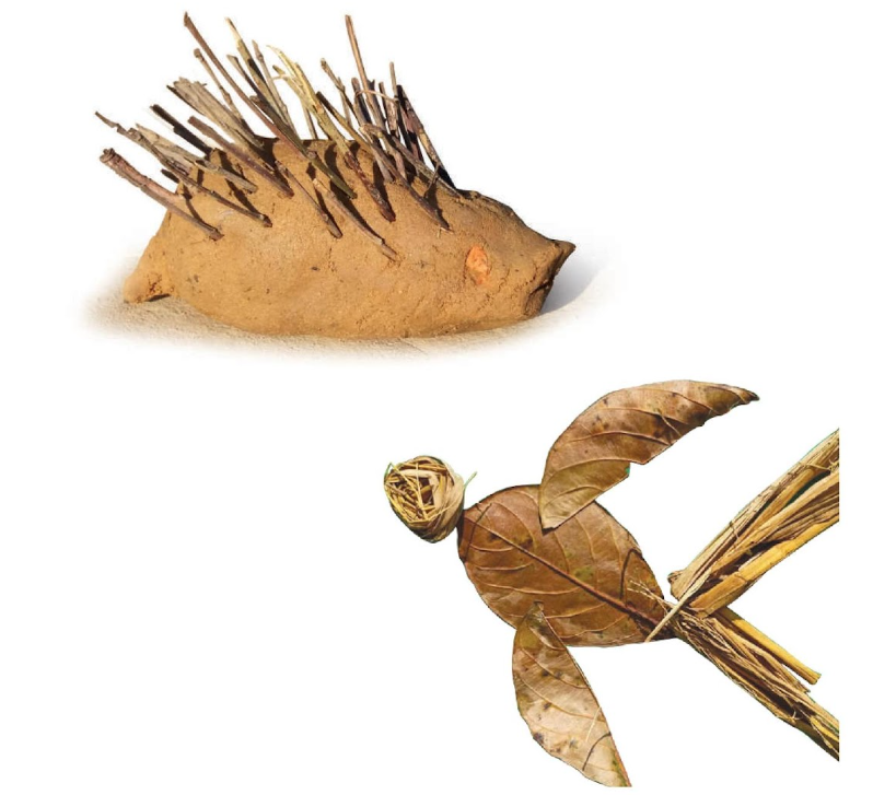 ■ আবার বিভিন্ন রকমের গাছের শুকনো পাতা, ফুল, শিকড়, ডালপালা, মাটি, বালিসহ নানা উপকরণ মিলিয়ে আমরা আমাদের মনের মতো বিভিন্ন কিছুর আকৃতিও বানাতে পারি।