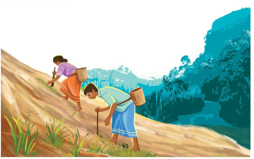 - এবার আমরা কাগজ কেটে/ড্রইং করে/গাছের পাতা/ডাল-পালা দিয়ে কিষাণ-কিষাণির অবয়ব কোলাজ তৈরি করতে/ রং করতে পারি বন্ধু খাতায়।