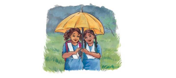 Then, she saw one of her classmates going to school. She was wet because of drizzling. Mina gave her a handkerchief to wipe his head. Then, she took her classmate under her umbrella and left for school. Her classmate thanked her and said, ‘You are always friendly, Mina’.