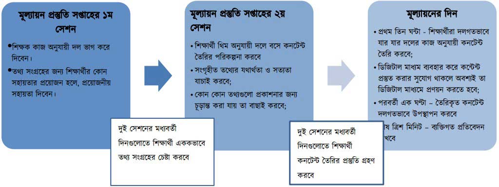 ৭। মূল্যায়ন উৎসবের দিন প্রকাশনার কনটেন্ট তৈরির (সপ্তম শ্রেণি ডিজিটাল প্রযুক্তি পারদর্শিতা নির্দেশক ৭.৪) জন্য শিক্ষার্থীরা ৩টি সেশন সময় পাবে;