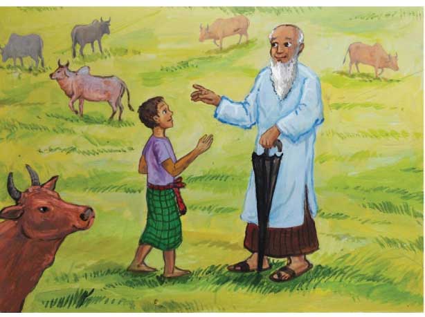 One day a cowboy with a few cows started to get them to the nearest field. On his way, he met an old wise man with an umbrella. He was a unique man. He used to give advice to the villagers. The villagers came to him regularly for advice. FUTURE LIES IN PRESENT